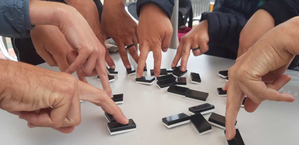 Durant el treball a les aules s'indagà en aquesta recerca constant de la identitat, creant un espai per a la reflexió, l'experimentació, la creativitat i la cooperació. Aquesta línia és la que treballaran Azucena Moya, Mireia Ferron i Ingrid Riera, cada una d'elles des d'una disciplina diferent. El tema de la identitat es va treballar d'una manera transversal, com un cub que està format per diferents cares, però que sense una d'elles no estaria complet. La recerca del tema, la proves, els errors... tenien cabuda en el projecte i de fet, tenen molt de sentit com a eina que ens serveix per a trobar el que ens interessa agafar i el que no. Jugar amb el buit i el ple, el dins i el fora, el ser o no ser (que diria Hamlet).