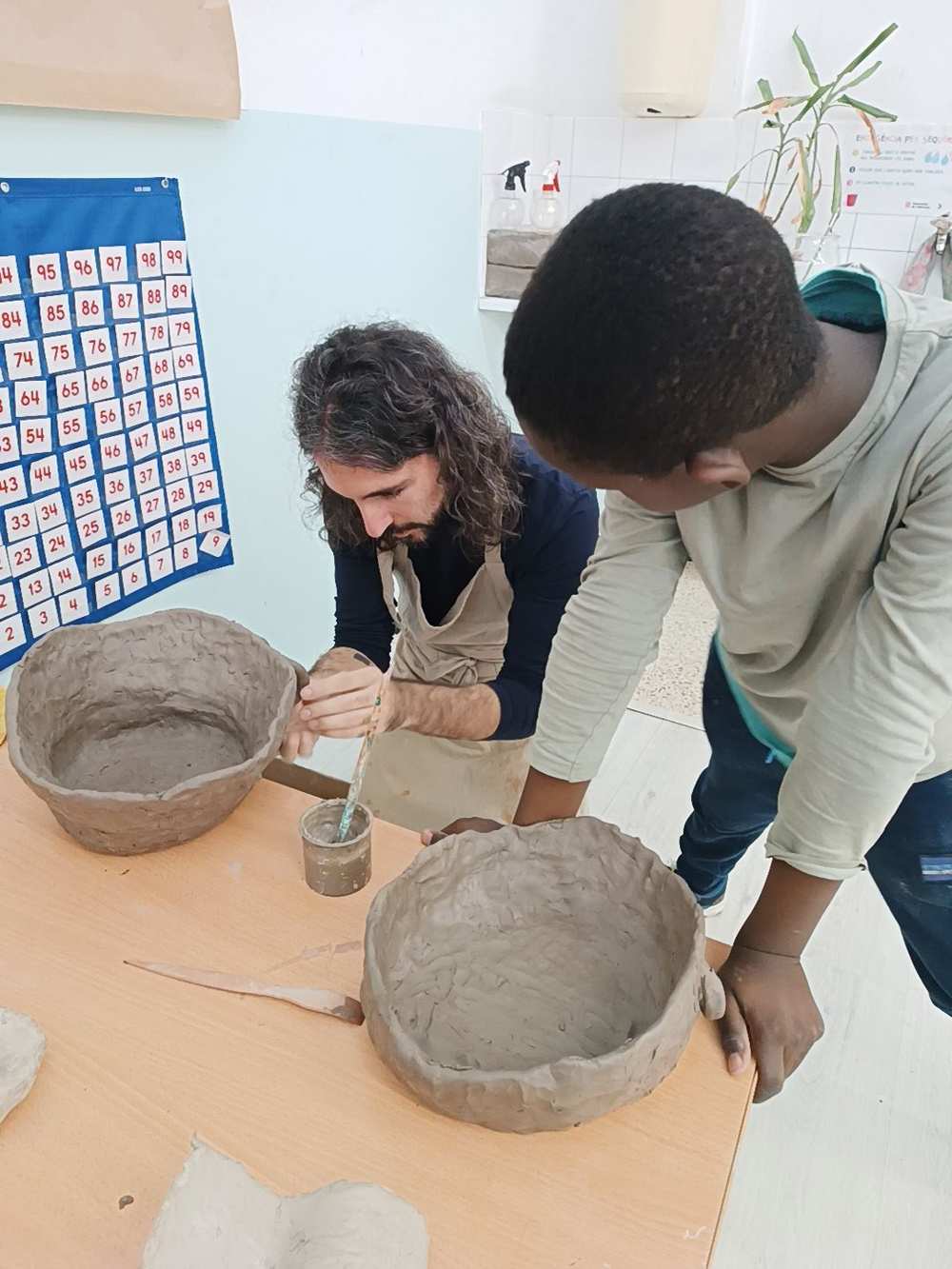 Estirant el fil d'aquesta darrera qüestió, durant la primavera els artistes van instal·lar el seu propi taller dins un dels espais de l'escola, utilitzant-lo com a lloc des del qual desplegar els projectes que actualment tenen en curs. Aquests projectes, que tenen com a nexe comú el riu Ter -riu que, al mateix temps, travessa el barri de Pont Major i és un element central d'alguns dels projectes que ja es treballen des de l'escola-, serveixen com a pretext a l'hora d'activar les sessions de treball a l'aula. Així mateix, el fet que els artistes estiguin treballant de forma continuada in situ, permet entendre la seva presència a l'escola com un "recurs" per altres docents i grups classe, podent aproximar-se a les artistes i vinculant els seus treballs a qüestions que estan treballant en diverses matèries, més enllà de les específicament relacionades amb l'art.