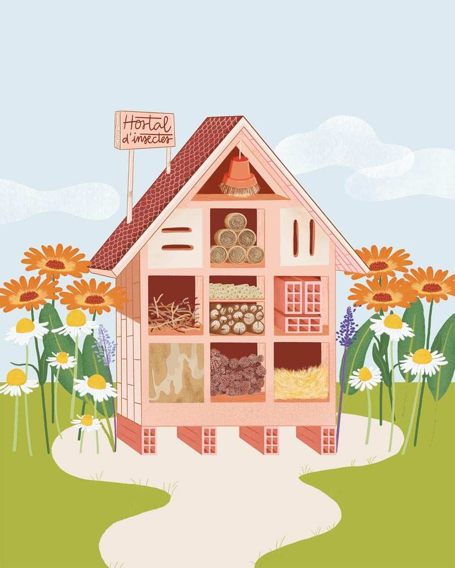 Un “hostal d'insectes” és un objecte pensat per oferir refugi a l’hivern i en el cas de certes espècies també serveix com a espai segur de nidificació durant la primavera. La seva missió és reproduir artificialment els hàbitats naturals d’insectes i aràcnids. La desforestació, la contaminació de l'aire, la destrucció dels hàbitats naturals o l’ús massiu d'insecticides posen en perill dos aspectes fonamentals de la funció d'aquestes espècies: la pol·linització i el control de plagues, per no mencionar altres possibles usos que els experts estan discutint, per exemple, el de contribuir a la sobirania alimentària en un futur immediat. Els materials de l’hostal són diversos i en funció de la selecció, atreuen unes espècies o d'altres.