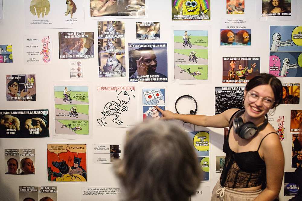 Roc Herms i el seu grup d’estudiants de l’Institut Sobrequés de Girona han abordat les problemàtiques vinculades a la projecció professional, el sistema educatiu i la vida a l’institut utilitzant el mems i la intel·ligència artificial. Una eina que també ha centrat la recerca dels alumnes de l’Institut Josep Brugulat de Banyoles amb Erik Estany Tigerström, incidint, més específicament, sobre les lògiques amb les quals funcionen els models de generació d’imatges a partir de textos i de quina manera estan condicionant les formes d’imaginar. Per la seva banda, Núria Nia ha proposat a l’alumnat de l’Institut Carles Rahola de Girona seleccionar allò que salvarien d’Internet davant un imminent col·lapse digital. Un exercici que obliga a interrogar-se pels suports en què es recolza la fràgil memòria digital alhora que ofereix una mostra de la visió dels adolescents sobre aquest futur hipotètic. Per a Bárbara Sánchez Barroso, en canvi, l’aposta llançada al grup d’alumnes de l’Institut Castell d’Estela ha estat la de sortir a caminar pels voltats d’Amer descobrint tot el que pot passar quan els mòbils estan apagats i l’única eina de registre és una antiga càmera de 16 mm.
