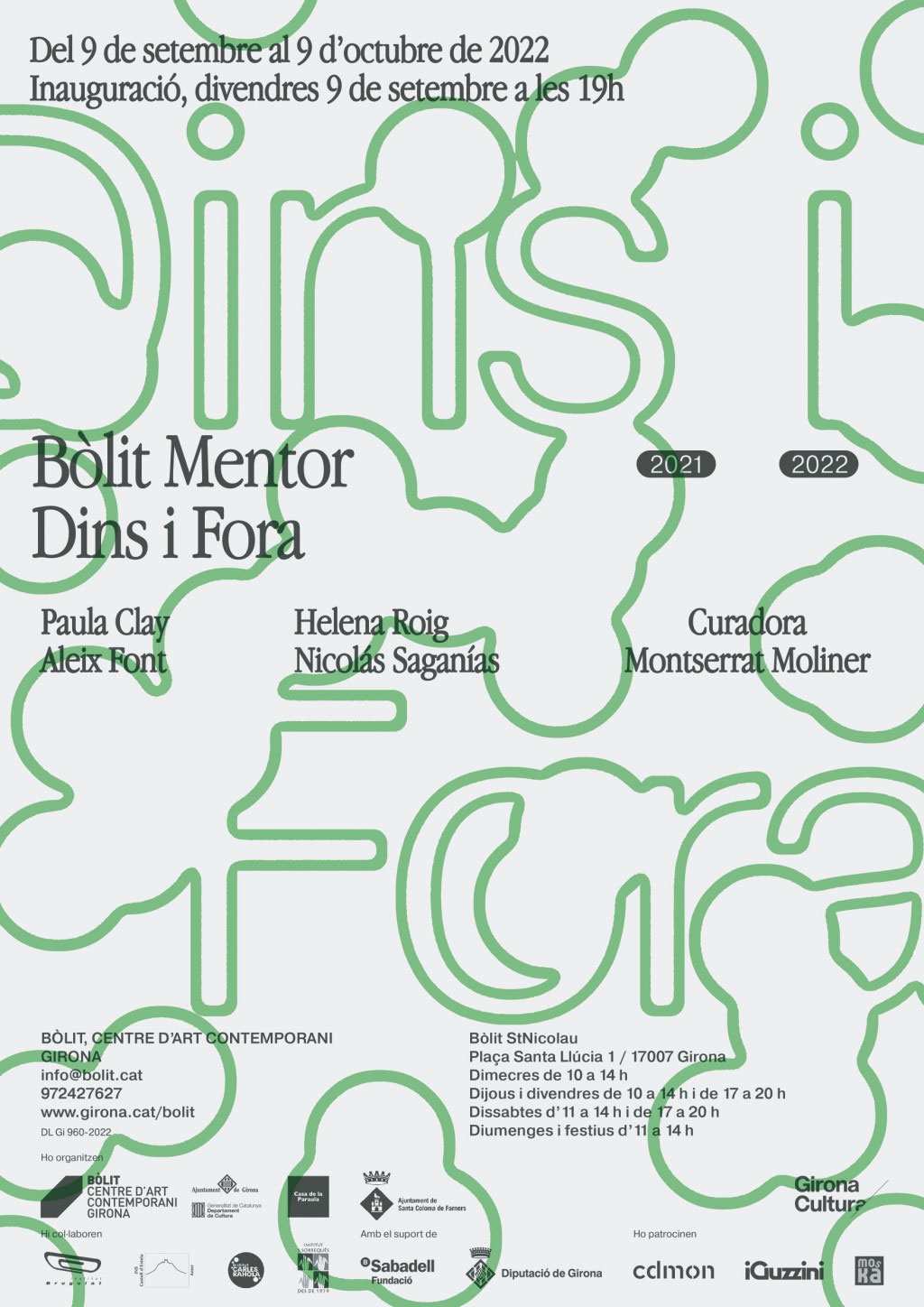 El divendres 9 de setembre a les 19 h al Bòlit_StNicolau tindrà lloc la inauguració de l’exposició “Dins i Fora. Transitar entre l'espai públic i privat” que aplega les propostes desenvolupades durant l’edició 2021/2022 del projecte educatiu Bòlit Mentor, que coproduïm amb la Casa de la Paraula de Santa Coloma de Farners.