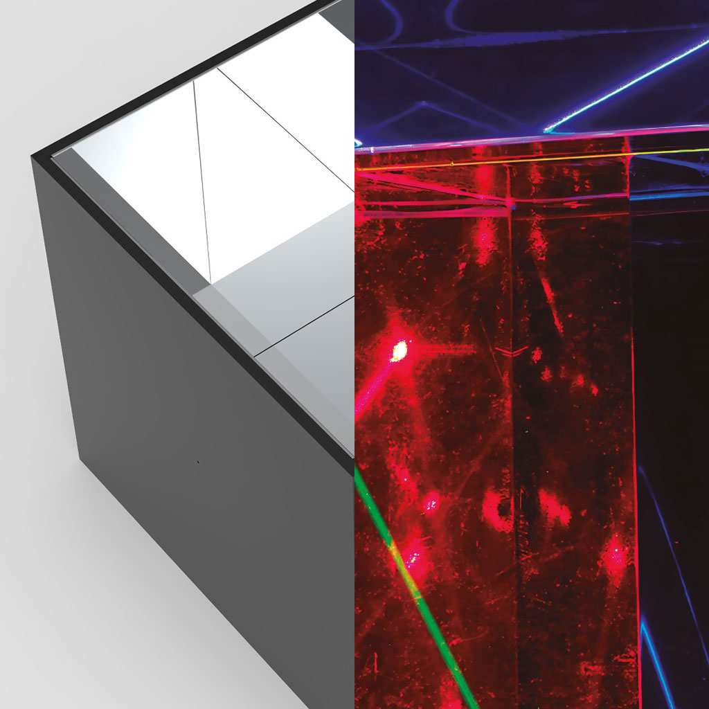 Apel·lant a aquella trobada transformadora on experiència, observació, predicció i imaginació convergeixen, aquesta exposició reuneix dos artistes que treballen amb aquests elements des de mirades singulars. Ambdós parteixen de l'observació i el pensament però materialitzen aquests conceptes des de perspectives profundament diferents i amb resultats sorprenentment diversos. Cada artista formalitza el procés creatiu dins d'un cub: un ens convida a submergirnos-hi, a ser testimonis d'un espai on les línies de pensament, exploració i ideació conflueixen en una nova realitat; l'altre ens manté a distància, requerint que confiem en la paraula de l'artista que, dins de la invisibilitat del cub, una xarxa de fotons en moviment teixeix la seva presència.