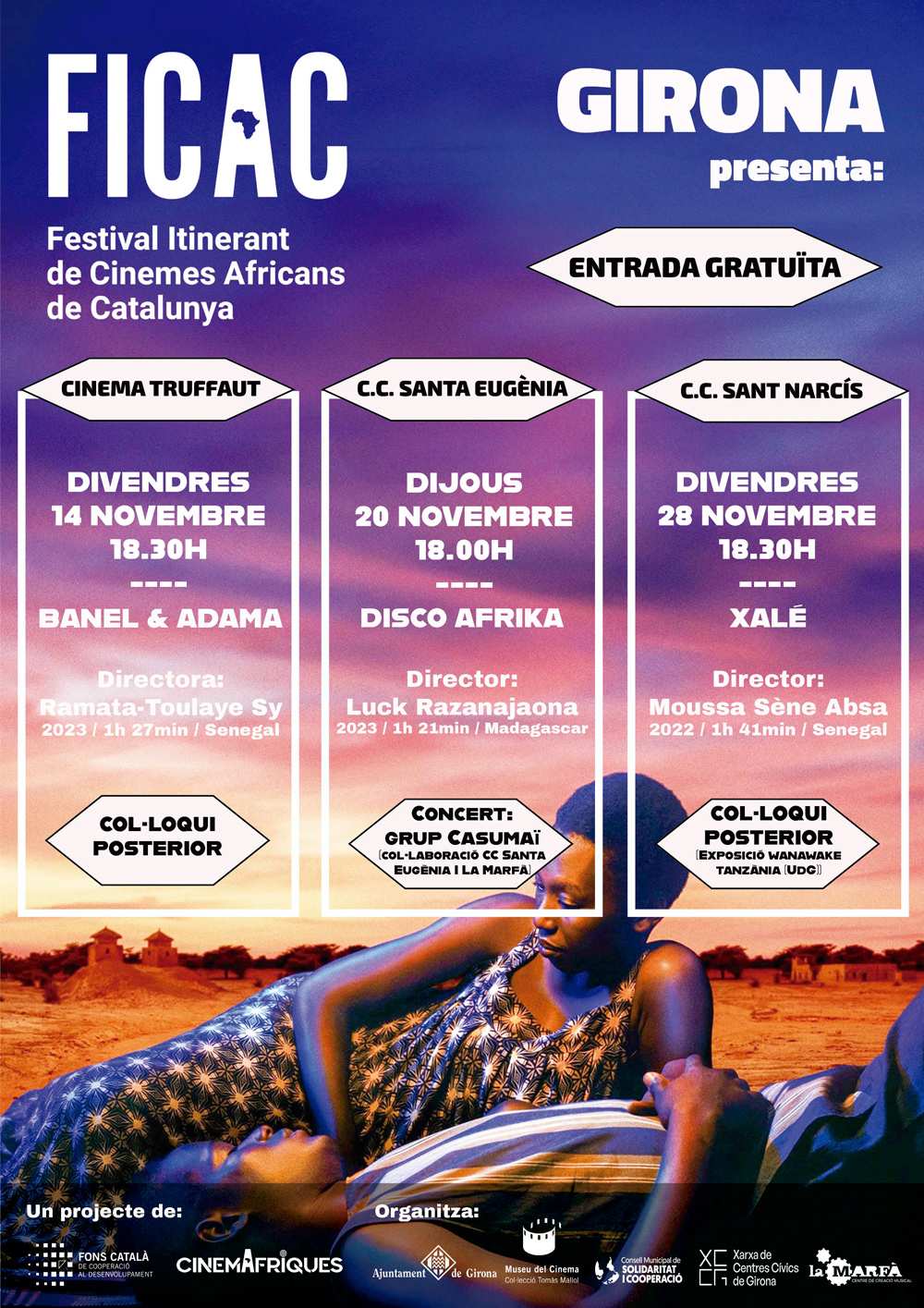 El Festival Itinerant de Cinemes Africans de Catalunya (FICAC) torna per segon any aquest novembre a Girona amb tres projeccions gratuïtes al Cinema Truffaut i als centres cívics de Santa Eugènia i Sant Narcís. Aquest projecte, impulsat per l'Associació Cinemàfriques i el Fons Català de Cooperació al Desenvolupament, compta per segon any amb el suport de l'Ajuntament de Girona i es consolida així en l'oferta cultural de la ciutat. L'objectiu d'aquesta iniciativa de cooperació cultural és apropar les cinematografies africanes i de la seva diàspora per així capgirar les mirades cap al continent veí a través de l'art i reconèixer els nous talents cinematogràfics del continent veí donant suport a la seva carrera professional.