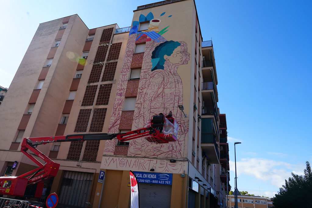 Els artistes de la 7a edició del monar’T ultimen els treballs d’art urbà i murals socials que omplen els barris de Santa Eugènia i Can Gibert del Pla
