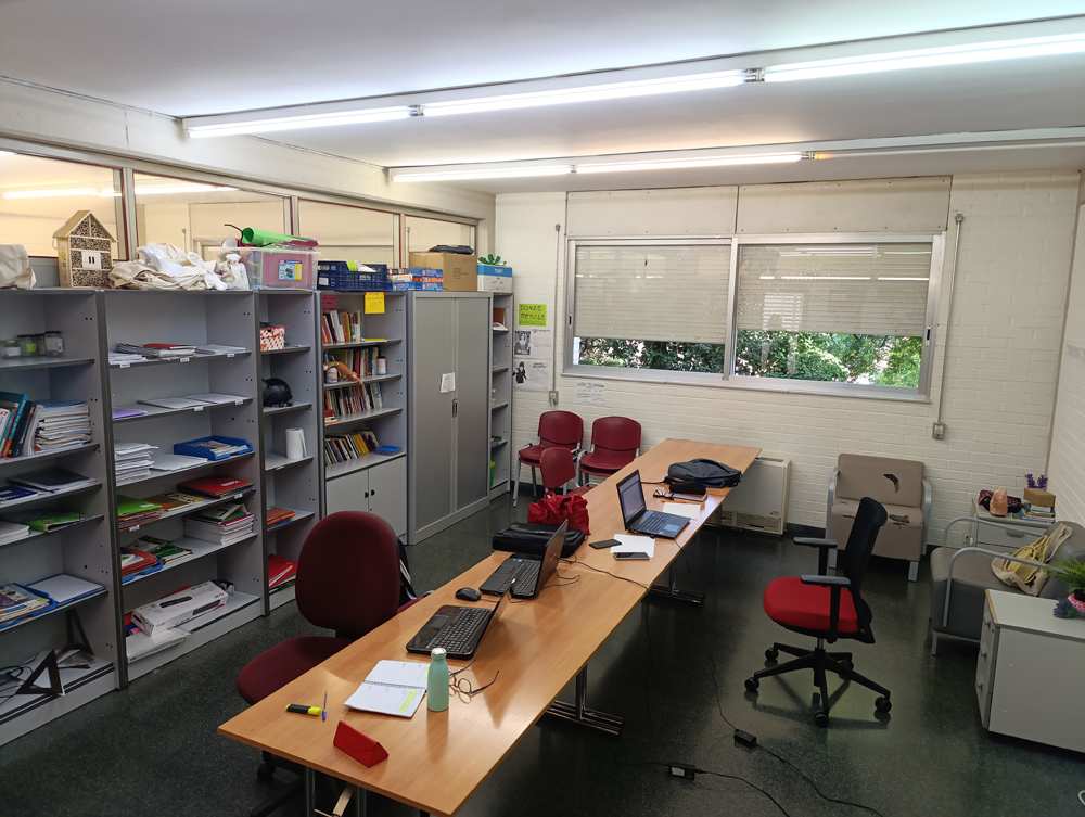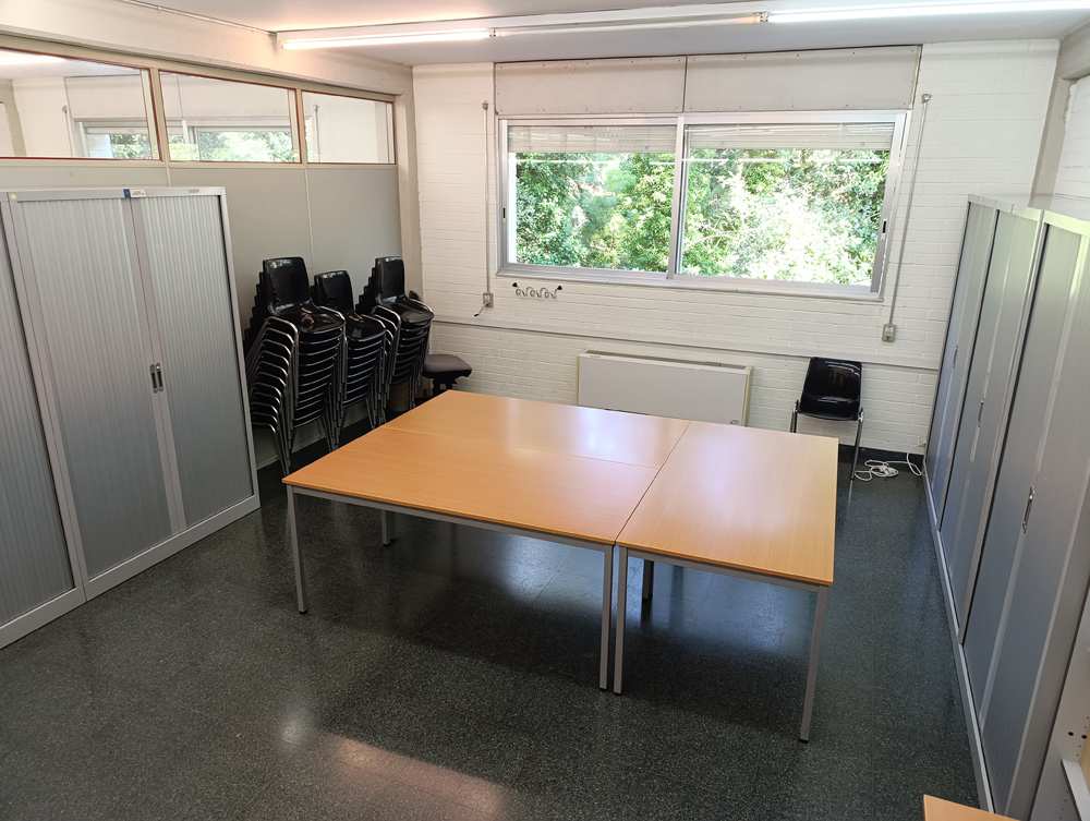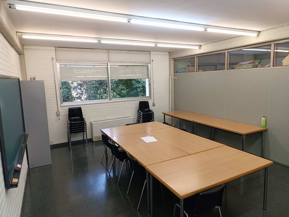 Aula a la primera planta equipada per a cursos i tallers de formació, així com per a casals educatius. Adaptada per a reunions de petit format. Disposa de pissarra.