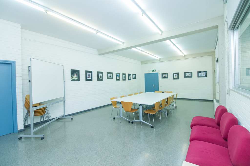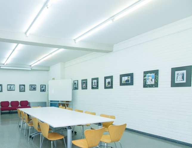 Sala amb capacitat per a 50 persones, a la planta baixa. Adequada per a reunions, formacions i petites conferències/ xerrades. Sovint s’utilitza per a espais d’exposició. Equipada amb pantalla de projecció.