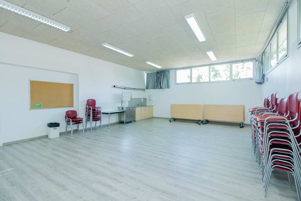 Sala amb capacitat per a 80 persones, a la planta baixa. La polivalència de la sala permet dur a terme activitats lúdiques / formatives per a infants i joves, reunions i conferències. Equipada per a dur a terme cursos i tallers, especialment de cuina de gran format, així com activitats comunitàries.