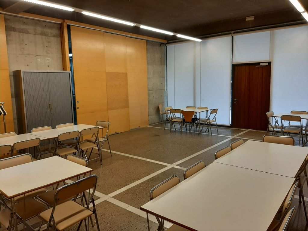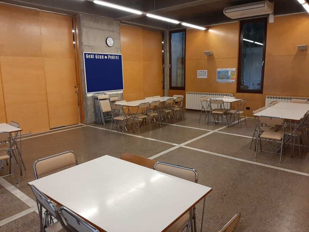 Sala situada a la planta baixa de l’edifici amb capacitat per 20-30 persones en funció de l’activitat. Equipada. Té una funció polivalent, s’utilitza per a tallers, reunions i tot tipus d’activitats. Annexa a aquesta sala hi ha un quartet que s’utilitza com a “office” de cuina i disposa d’una pica d’aigua i microones.