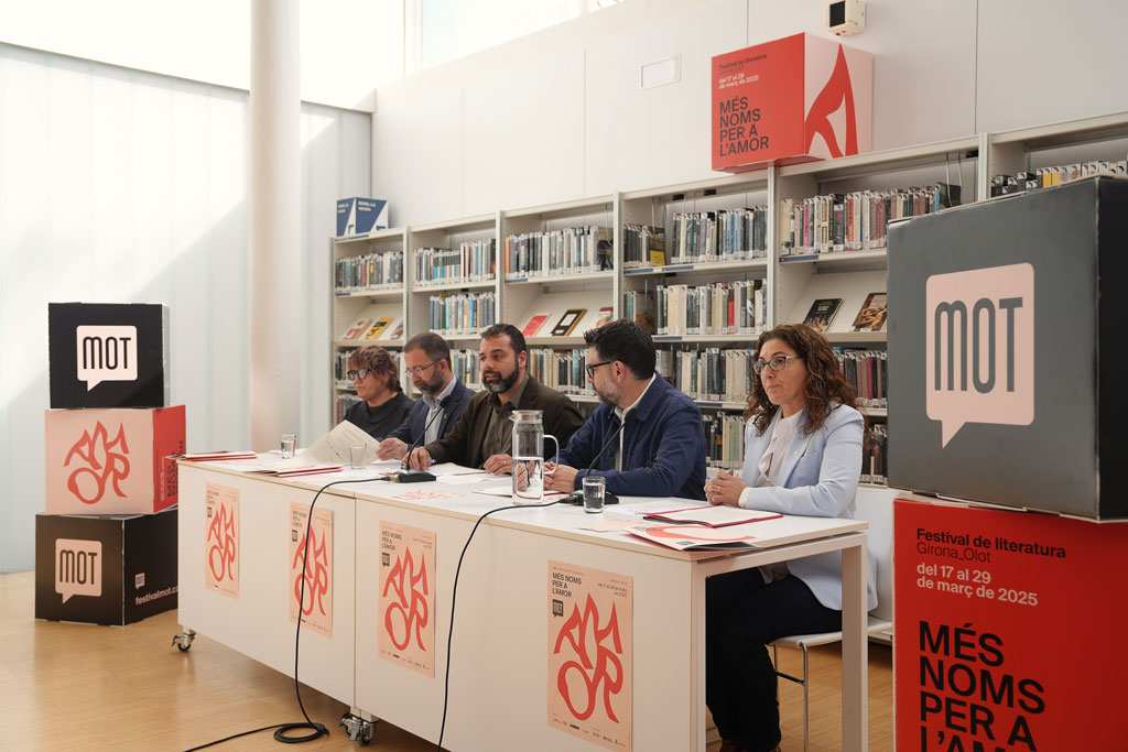 El festival MOT 2025 dedica l’11a edició a l’amor des d’una perspectiva oberta i indaga en les relacions sexoafectives. Del 17 al 22 de març, a Girona, i del 24 al 29 de març, a Olot, l’esdeveniment acollirà una quinzena de converses amb una trentena d’autors i autores que conreen l’amor en totes les seves formes. Aquest matí, el tinent d’alcaldia i regidor de Cultura de l’Ajuntament de Girona, Quim Ayats i Bartrina; el regidor de Cultura i Educació de l’Ajuntament d’Olot, Josep Quintana Caralt; el diputat de la Diputació de Girona, Joaquim Roca i Ventura; la directora territorial del Departament de Cultura a Girona de la Generalitat de Catalunya, Isabel Bernal; la comissària del Festival MOT, Montse Barderi, i la directora del festival a Girona, Glòria Granell, han presentat l’esdeveniment.