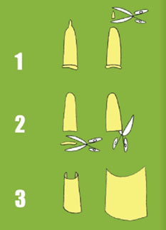 - En el cas del cunnilingus o l'estimulació oro-anal, podeu emprar una barrera de làtex com la d'aquest kit, un preservatiu obert o plàstic no porós d'embolcallar aliments (aquell que no és apte per a microones). Per al cunnilingus, humidifiqueu la vulva amb lubricant hidrosoluble abans de posar la barrera de làtex.