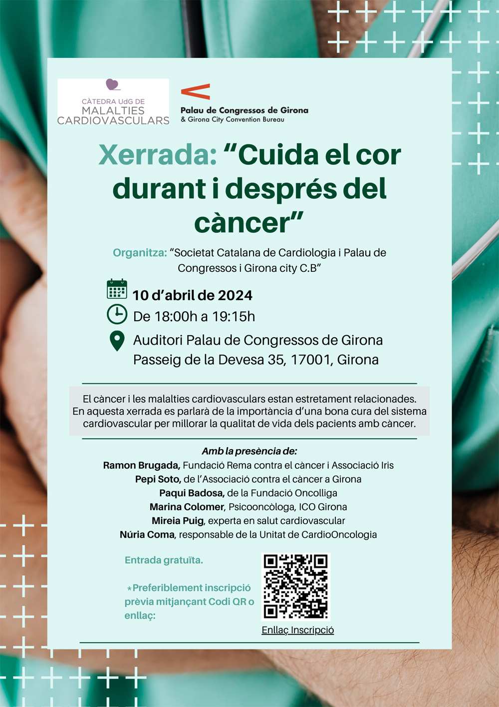 - "Cuida el cor durant i després del càncer", xerrada sobre la cura del sistema cardiovascular per millorar la qualitat de vida dels pacients amb càncer. Comptarà amb la participació del doctor Ramon Brugada i la doctora Núria Coma, entre d'altres. Aquesta xerrada té lloc en el marc de les III Jornades de Cardio-Onco-Hematologia de la Societat Catalana de Cardiologia.