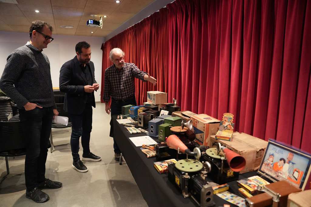 Aquest migdia ha tingut lloc la presentació de l’exposició amb el tinent d’alcaldia i regidor de Cultura de l’Ajuntament de Girona i patró de la Fundació Museu del Cinema, Quim Ayats i Bartrina; el director del Museu del Cinema, Jordi Pons, i el col·leccionista Enric Soler i Raspall.