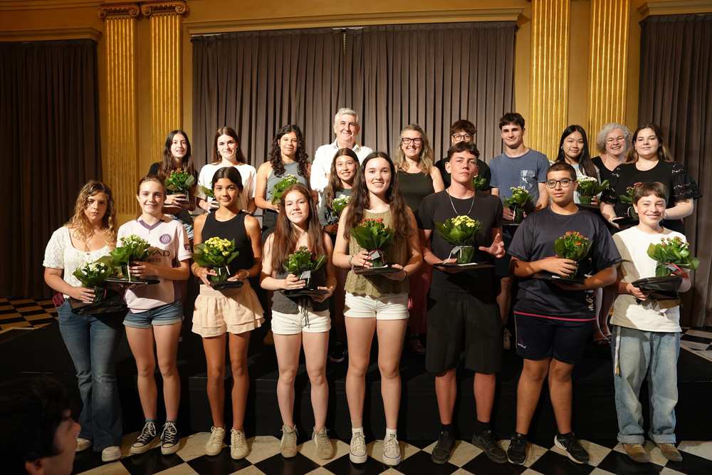 Divuit alumnes de set centres educatius de la ciutat han rebut els guardons aquest matí al Saló de Descans del Teatre Municipal