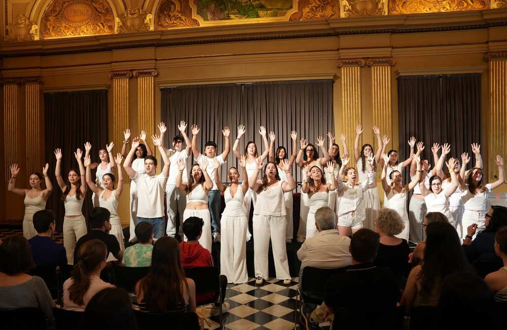 L’acte ha comptat amb les actuacions musicals dels alumnes de 1r de batxillerat artístic de l’Institut Santiago Sobrequés, amb la direcció i animació musical de les professores Mercè Rigau i Carina Nadal.