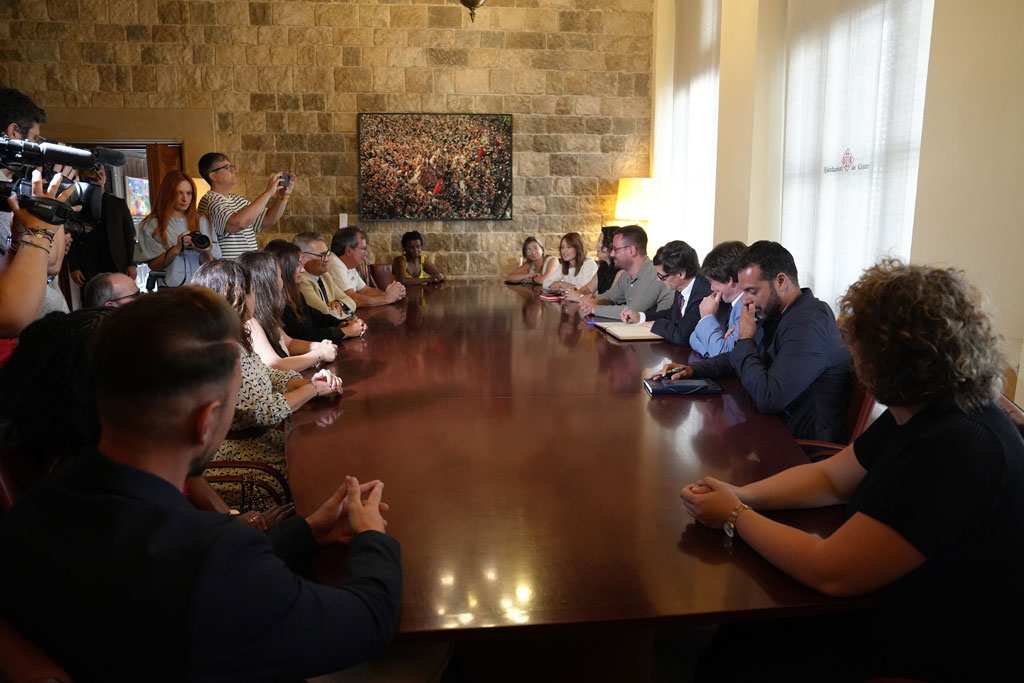 Aquesta és la primera recepció institucional oficial de Salvador Illa al consistori des que va prendre possessió del càrrec. Diversos regidors i regidores dels grups municipals de l'Ajuntament han assistit a l'acte.