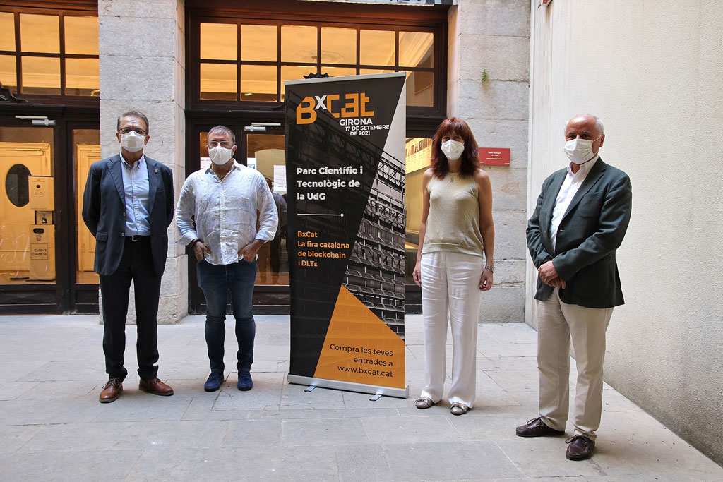 L’alcaldessa de Girona, Marta Madrenas; el diputat de Noves Tecnologies de la Diputació de Girona, Jordi Xargay; el president de la Cambra de Comerç de Girona, Jaume Fàbrega, i el president executiu del Centre Blockchain de Catalunya (CBCat), Quirze Salomó, han presentat avui oficialment la iniciativa.