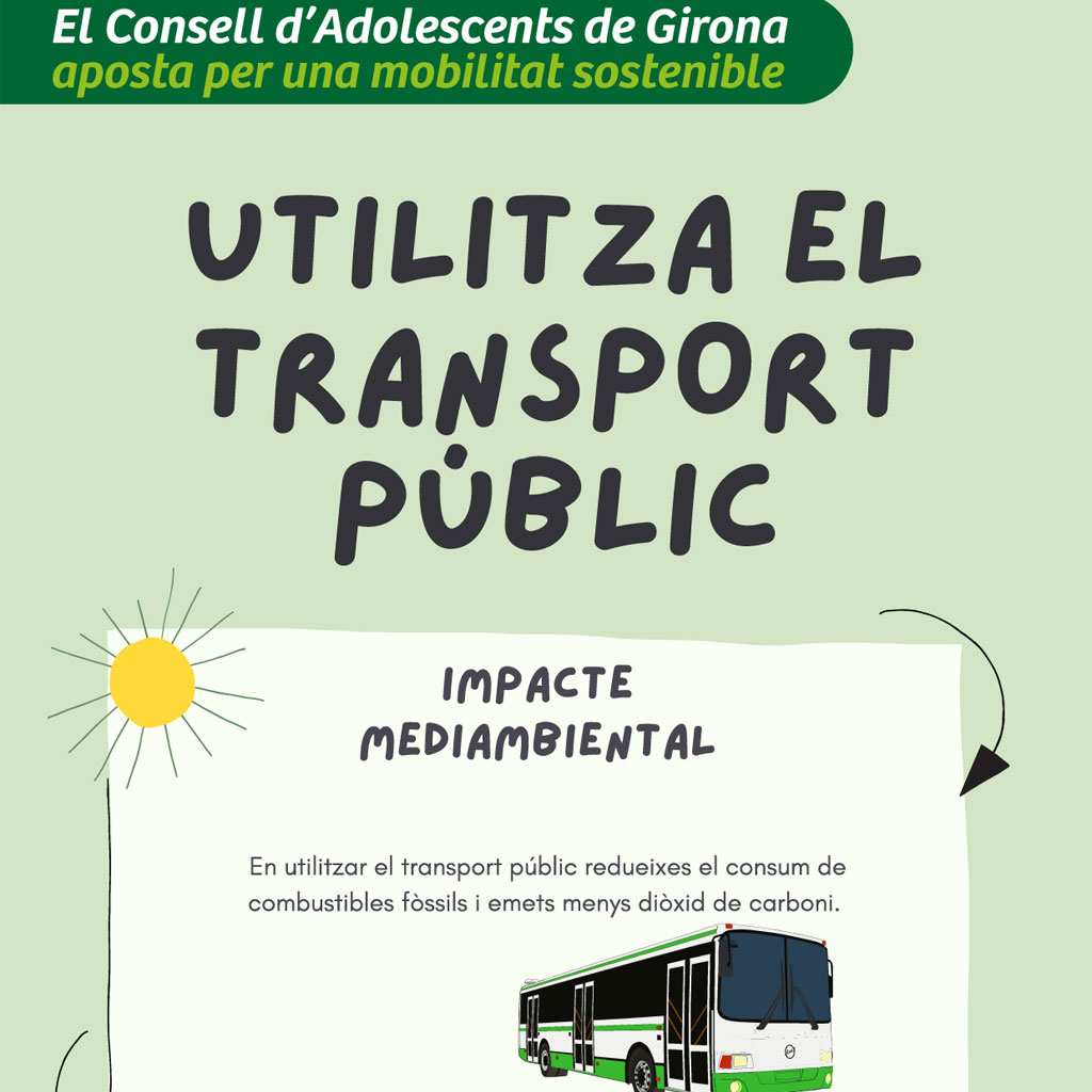Els nois i noies de 2n d'ESO de l'Institut Jaume Vicens Vives han dissenyat un fulletó informant dels beneficis que té l'ús del transport públic pel medi ambient.