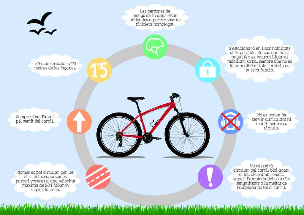 Els nois i noies de 2n d'ESO de l'institut Carles Rahola han dissenyat un tríptic on informen de la normativa per circular amb bicicleta.