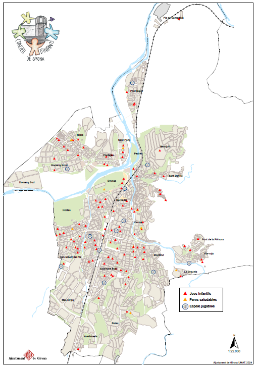 - Fer un mapa de la ciutat on figurin els espais jugables que des del Consell d’Infants s’han proposat, així com una relació de jocs tradicionals que s'hi puguin dur a terme.