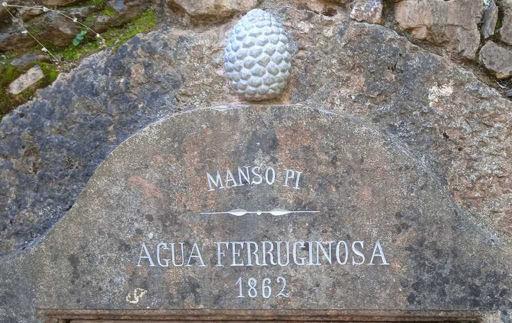La nova pinya s'ha esculpit a partir de models similars documentats, utilitzant pedra de Girona amb característiques semblants a la de la llinda original. El resultat permet recuperar el caràcter simbòlic de la font, vinculada històricament a la família Pi, de la qual la pinya és l'emblema heràldic. Pel que fa a la inscripció -"MANSO PI / AIGUA FERRUGINOSA / 1862"-, s'ha refós el text directament sobre la llinda, respectant la tipografia original, fet que ha permès tornar-la plenament llegible i visible.