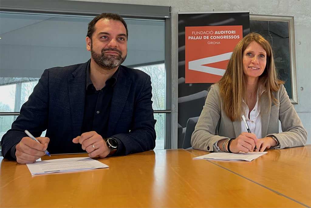 El president del comitè executiu de la Fundació Auditori Palau de Congressos i tinent d’alcaldia i regidor de Cultura de l’Ajuntament de Girona, Quim Ayats Bartrina, i l'administradora del Grup Cànovas 1852, Cristina Cànovas, varen signar el conveni
