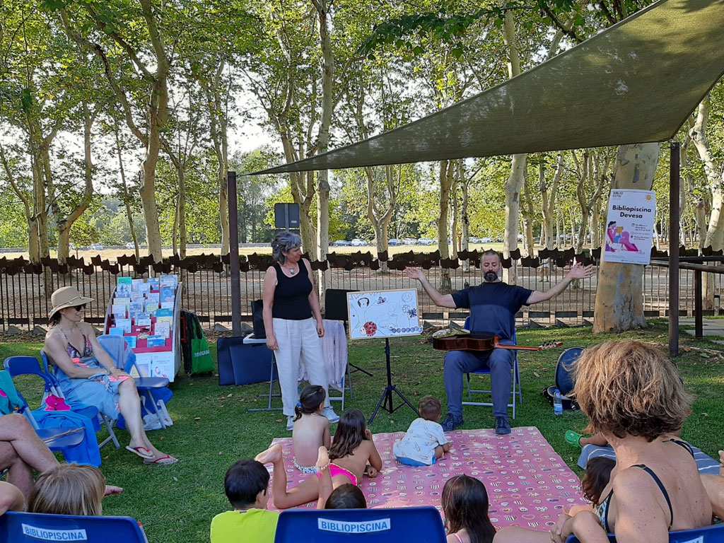D’altra banda, les Bibliopiscines han tornat a les piscines municipals de la Devesa, en col·laboració amb el Servei Municipal d’Esports, que reserva un espai ombrejat a tocar de l’aigua perquè s’hi puguin dur a terme més fàcilment totes les activitats de dinamització lectora per a infants i també el servei de consulta i préstec de llibres, diaris i revistes amb el carnet de biblioteques.