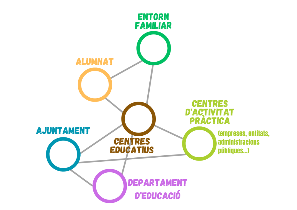 L'ajuntament ofereix el marc general de realització del projecte, prepara els convenis de col·laboració i dona suport als centres educatius i als centres d'activitat pràctica en el desenvolupament del programa. Per la seva banda els centres educatius seleccionen l'alumnat i s'encarreguen del seguiment de l'estada i els centres d'activitat pràctica acullen l'alumnat i col·laboren en la seva formació.