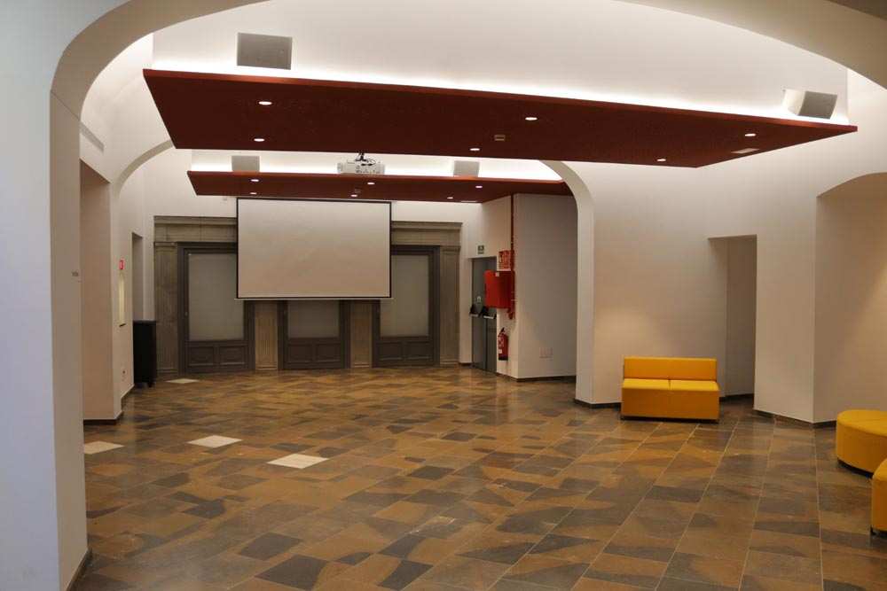 Espai polivalent per organitzar ponències, jornades o activitats. Està equipat amb cadires, sofàs i taules. També hi ha un sistema de projecció i so.