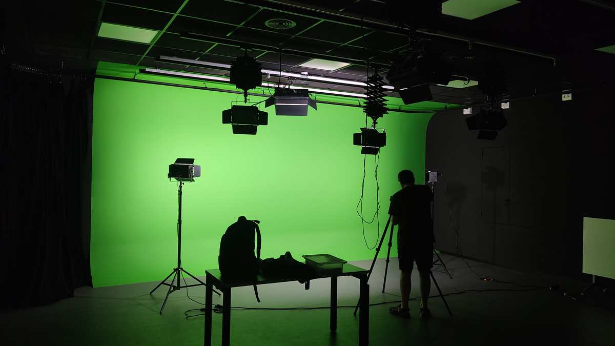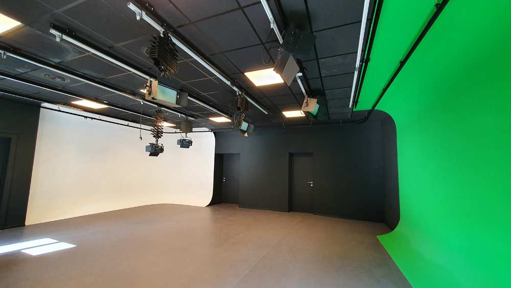 Amb una superfície de 72m² l’espai està equipat amb dos ciclorames: un chroma key i un blanc. També disposa d’una cortina negre per cobrir els ciclorames. El sostre està equipat amb 7 rails electrificats i una taula de control d’il·luminació DMX. Està dimensionat per a realitzar gravacions audiovisual i sessions de fotografies.