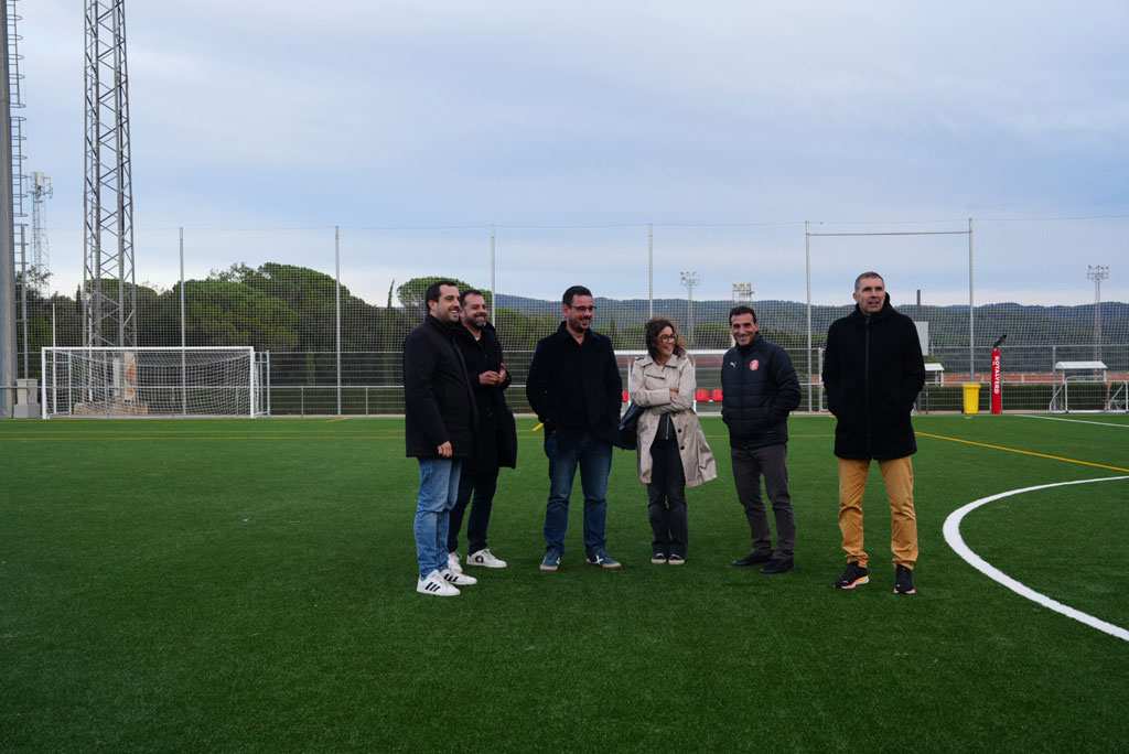 Finalitzen les obres de renovació de la gespa artificial dels camps municipals de futbol-7 i futbol-11 de Torres de Palau. L’alcalde de Girona, Lluc Salellas i Vilar; el tinent d’alcaldia i regidor de Cultura de l’Ajuntament de Girona, Quim Ayats i Bartrina, i el regidor d’Esports, Àdam Bertran i Martínez, han visitat aquesta tarda les obres acompanyats del president del Girona FC, Delfí Geli, club que utilitza l’equipament habitualment. En concret, els treballs han consistit en la substitució de la gespa artificial de tipus monofilament amb recobert de sílice i cautxú per gespa recoberta de sílice i farcit orgànic de blat de moro, d’acord amb el reglament europeu.