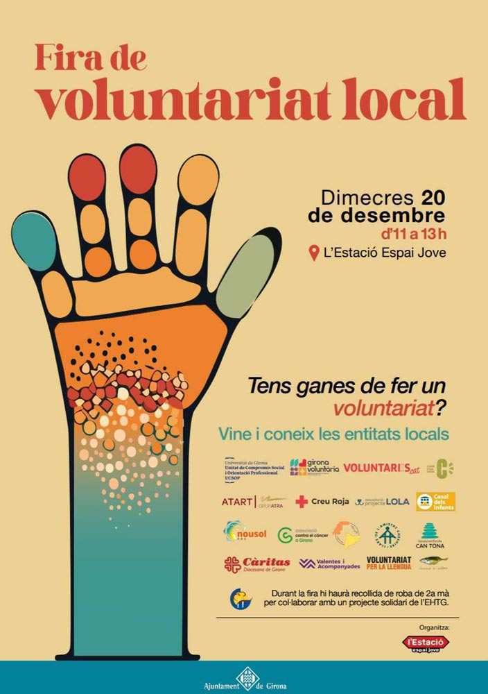 L’Estació Espai Jove organitza demà, dia 20 de desembre, la seva primera Fira de Voluntariat Local. La jornada està pensada per donar a conèixer els projectes de voluntariat que hi ha a la ciutat i a les comarques de Girona, visibilitzant les principals coordinadores de voluntariat, entitats i projectes de diferents àmbits: social, educatiu, de salut, mediambiental, cultural, entre d’altres. La fira començarà a les 11 h i finalitzarà a les 13 h.