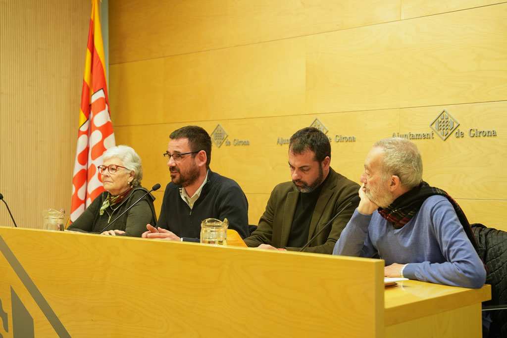 L’alcalde de Girona, Lluc Salellas i Vilar, ha presentat aquest matí la programació d’activitats al costat del tinent d’alcaldia i regidor de Cultura, Quim Ayats Bartrina; la coordinadora del cicle de debat: “Girona: mirada 2100”, Isabel Salamaña, i el representant de l’Institut d’Estudis Gironins (IEG), Josep Maria Nolla.