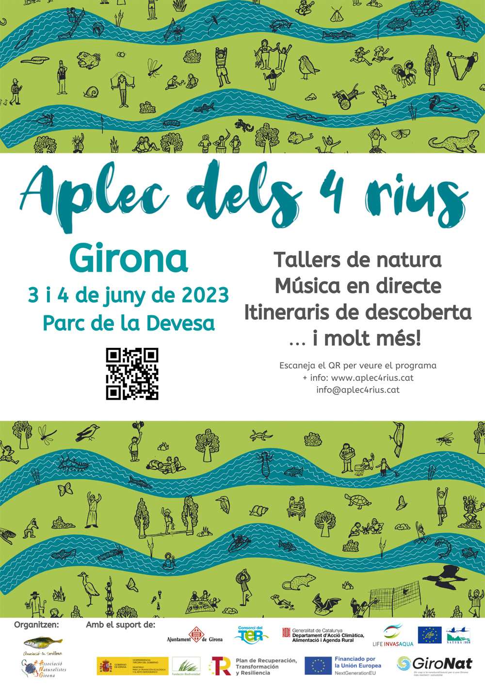 El parc de la Devesa de Girona acollirà els dies 3 i 4 de juny una nova edició de l’Aplec dels 4 Rius. Durant dos dies, s’organitzaran una quarantena d’activitats familiars i participatives, de caràcter educatiu i de sensibilització, però també lúdic i d’entreteniment, per reivindicar i donar a conèixer el patrimoni fluvial de la ciutat. Es tracta d’un esdeveniment impulsat per l’Associació Naturalistes de Girona i l’Associació La Sorellona, amb la col·laboració de l’Ajuntament de Girona i del Consorci del Ter, que s'emmarca en el projecte de renaturalització urbana GiroNat.