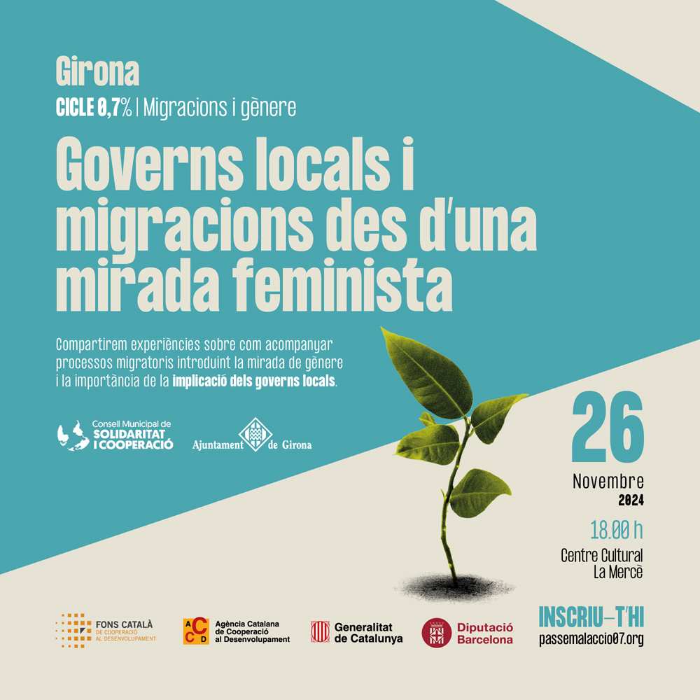 La implicació dels governs locals en les migracions amb mirada feminista protagonitzarà el tercer acte del "Cicle 0,7%", una iniciativa emmarcada en la campanya "No va només de posar-se d'acord. Passem a l'acció", impulsada pel Fons Català de Cooperació al Desenvolupament amb el suport de l'Ajuntament de Girona. L'objectiu és recuperar el 0,7% a l'agenda política i augmentar el compromís dels governs locals per la cooperació internacional per la justícia global.