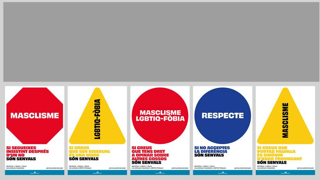 Coincidint amb la proximitat de la commemoració del 8 de març, l’Ajuntament de Girona ha engegat una campanya de sensibilització i conscienciació sobre les actituds masclistes i LGTBI-fòbiques a la societat. Sota el lema “Són senyals”, es fa un símil amb la senyalística viària per fomentar un codi relacional respectuós feminista i LGTBIQ.