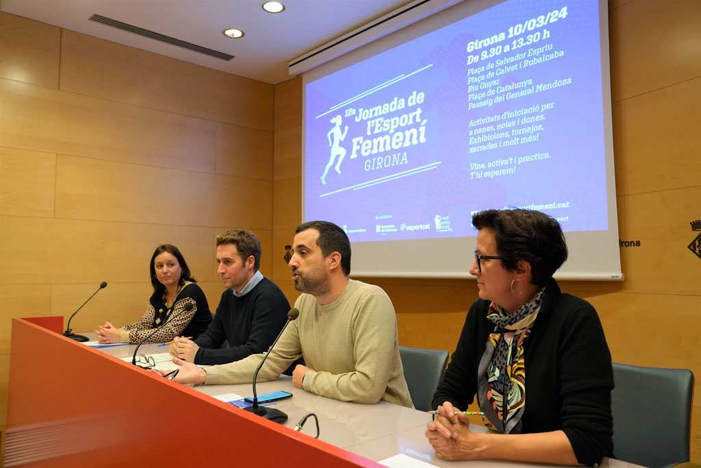 El centre de Girona es tornarà a omplir de nenes, noies i dones el diumenge 10 de març, amb motiu de la 12a edició de la Jornada de l’Esport Femení. Tot el programa d’activitats, tallers i xerrades, que es concentraran al matí, de 9.30 a 13.30 h, s’ha presentat aquest dimarts a la sala Ferran Agulló de la Diputació de Girona. En l’acte hi han participat el regidor d’Esports i Joventut de l’Ajuntament de Girona, Àdam Bertran i Martínez; el diputat d’Esports de la Diputació de Girona, Jordi Masquef; la representant territorial de l’Esport a Girona de la Generalitat de Catalunya, Anna Julià, i la coordinadora de la Jornada de l’Esport Femení, Olga Praderas. També hi han assistit Sara Bellapart i Gemma Soy (dues de les ambaixadores d’enguany), així com representants d’algunes de les entitats i associacions esportives que col·laboren en l’esdeveniment.