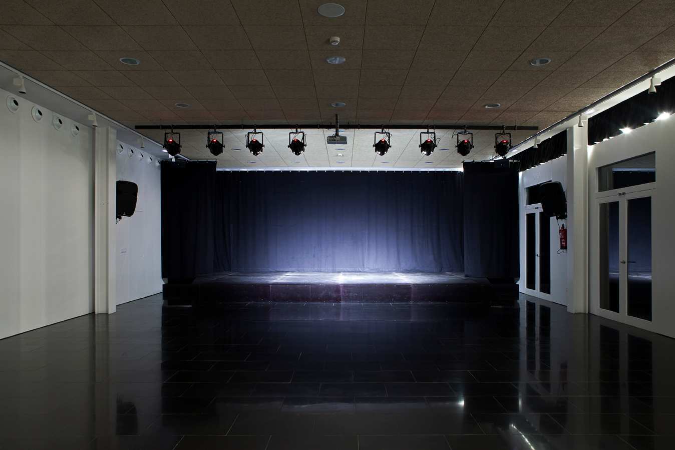 Sala polivalent per a usos culturals i cívics situada a la planta baixa. Es troba en un edifici exterior amb accés independent però articulat amb el vestíbul d’entrada a l’edifici principal. La sala d’actes està equipada amb un entarimat de 30 m2 i un equip de so i d’il·luminació aptes per acollir actuacions musicals i escèniques de petit format. També disposa d’un equip de so apte per a xerrades i conferències, un projector de vídeo i una pantalla de projeccions. Podeu consultar el material tècnic disponible segons si és: