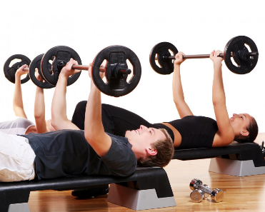 Exercici de força de tren superior executat sobre banc horitzontal en què la contracció concèntrica és una empenta de braços cap amunt, utilitzat per a enfortir la musculatura del pit.