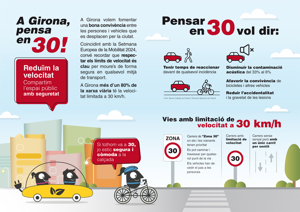 A Girona la velocitat genèrica de circulació és de 30 km/h a excepció de les vies on un senyal indiqui una altra velocitat.
