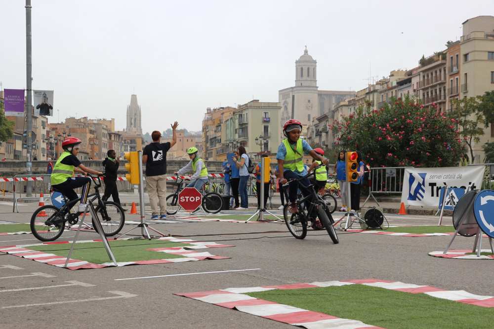 Girona aprofita la zona de vianants de la plaça de Catalunya per fomentar la mobilitat escolar sostenible