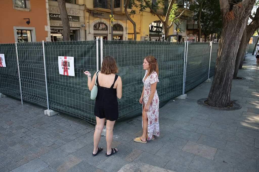 L’actuació de la plaça de Catalunya consisteix en substituir les llambordes per unes de noves i reforçar la base. En total, s’actuarà en una àrea de 75 metres quadrats. Està previst que els treballs s’allarguin fins a finals d’agost. Durant aquesta setmana es retiraran les llambordes i tot seguit es col·locaran les noves.