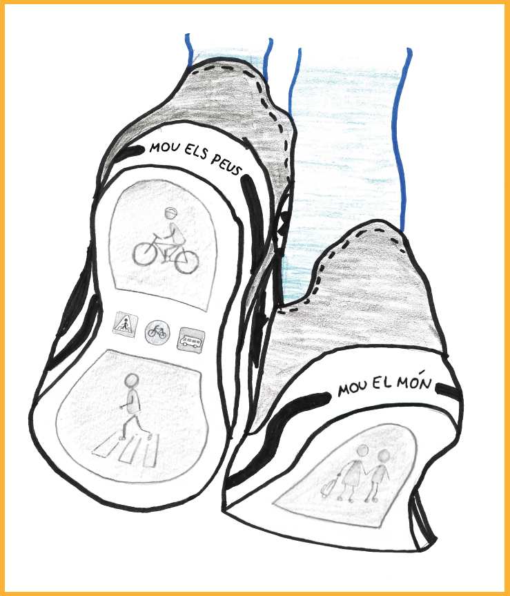 - Edició 2017- 2018: Disseny del lema i logotip “Mou els peus, mou el món”. Posterior imatge representativa dels projectes de mobilitat escolar de l’Ajuntament de Girona.
