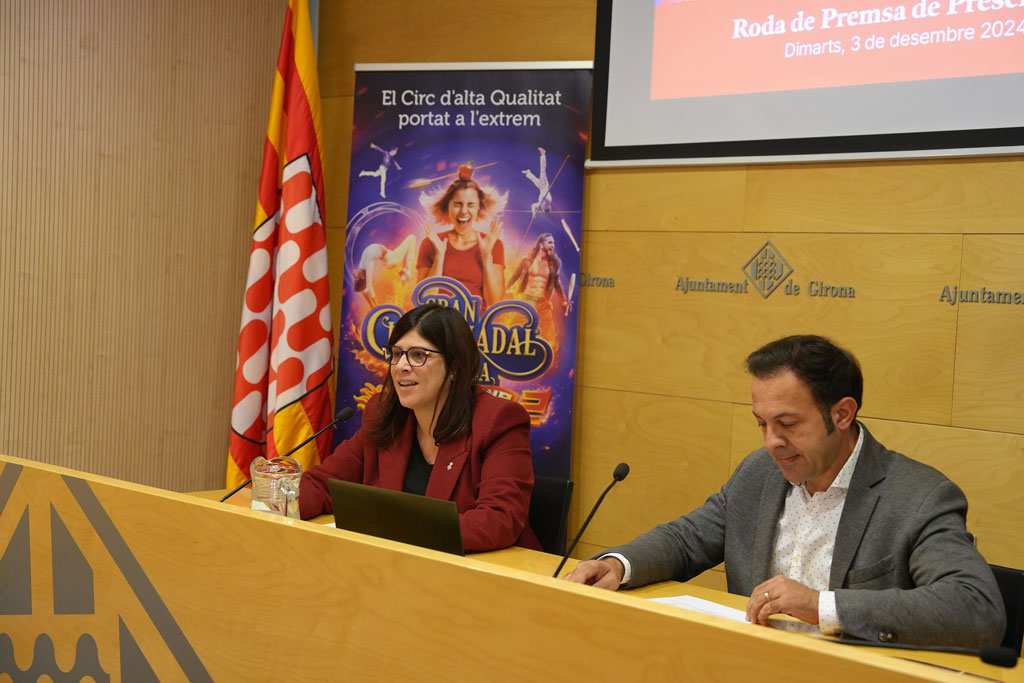 La vicealcaldessa i regidora de Promoció Econòmica de l’Ajuntament de Girona, i vicepresidenta segona de la Diputació de Girona, Gemma Geis i Carreras, i el president de Circus Arts Foundation, Genís Matabosch, han explicat aquest matí alguns detalls de la pròxima edició de l’esdeveniment nadalenc.
