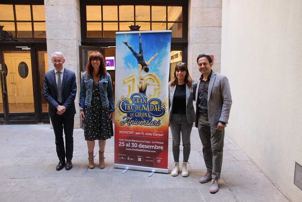 L’alcaldessa de Girona, Marta Madrenas; el vicepresident segon i diputat de Cultura de la Diputació de Girona, Albert Piñeira, i el president de Circus Arts Foundation, Genís Matabosch, han explicat aquest matí alguns detalls de la pròxima edició de l’esdeveniment nadalenc.