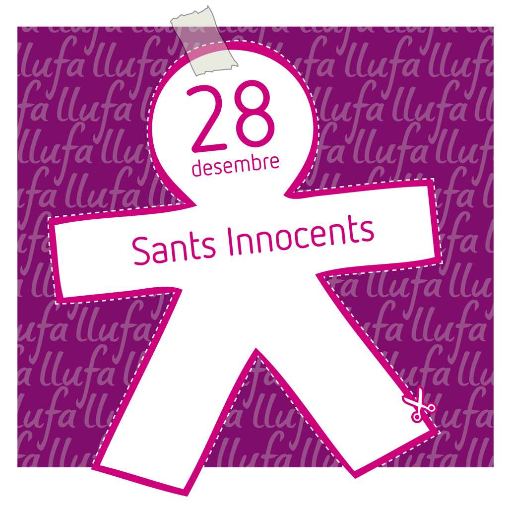Entre altres innocentades que es toleren aquest dia (com les notícies falses d’alguns mitjans de comunicació), la broma i enganyifa més típica, per celebrar el dia dels sants Innocents a Catalunya, consisteix a retallar i penjar llufes a l’esquena de la gent (familiars, amics, vianants, etc.) sense que se n’adoni. La llufa no és res més que un ninot de paper com aquest que podeu pintar, retallar i fer servir de model.