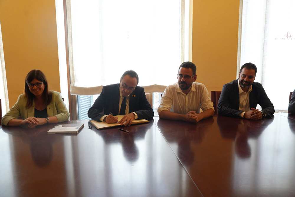 Després de la reunió, s'han traslladat a la Sala de Junta de Govern Local, on el president del Parlament ha signat el llibre d'honor de la ciutat, ja que aquesta és la seva primera recepció institucional oficial a la ciutat des que va prendre possessió del càrrec. En aquest moment, han assistit en l'acte diferents regidors i regidores dels grups municipals del consistori.