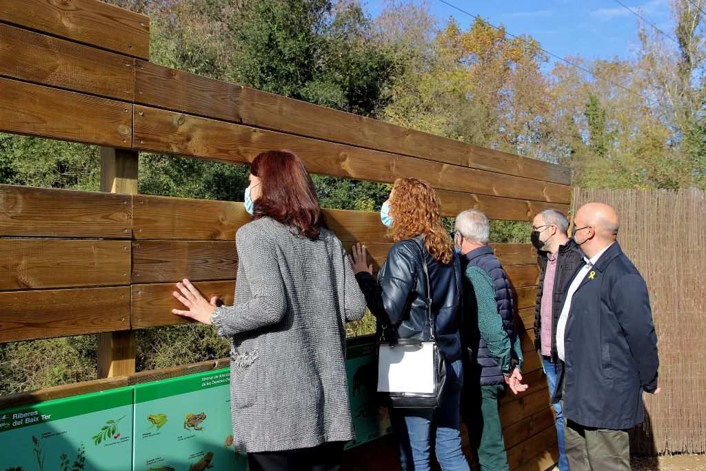 Per últim, s’ha instal·lat una pantalla aguait de fusta al voltant de la bassa amb obertures de diferents alçades per tal que a través d’elles la ciutadania pugui observar els animals. A la pantalla s’hi ha instal·lat senyalització interpretativa perquè els usuaris puguin identificar bé les espècies de fauna i flora de l’entorn.