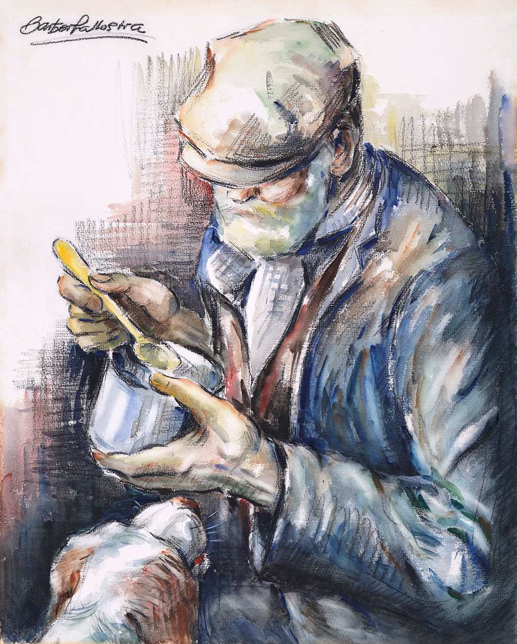 El vell republicà, no datat. Aquarel·la i carbó sobre paper. MHG 17674.