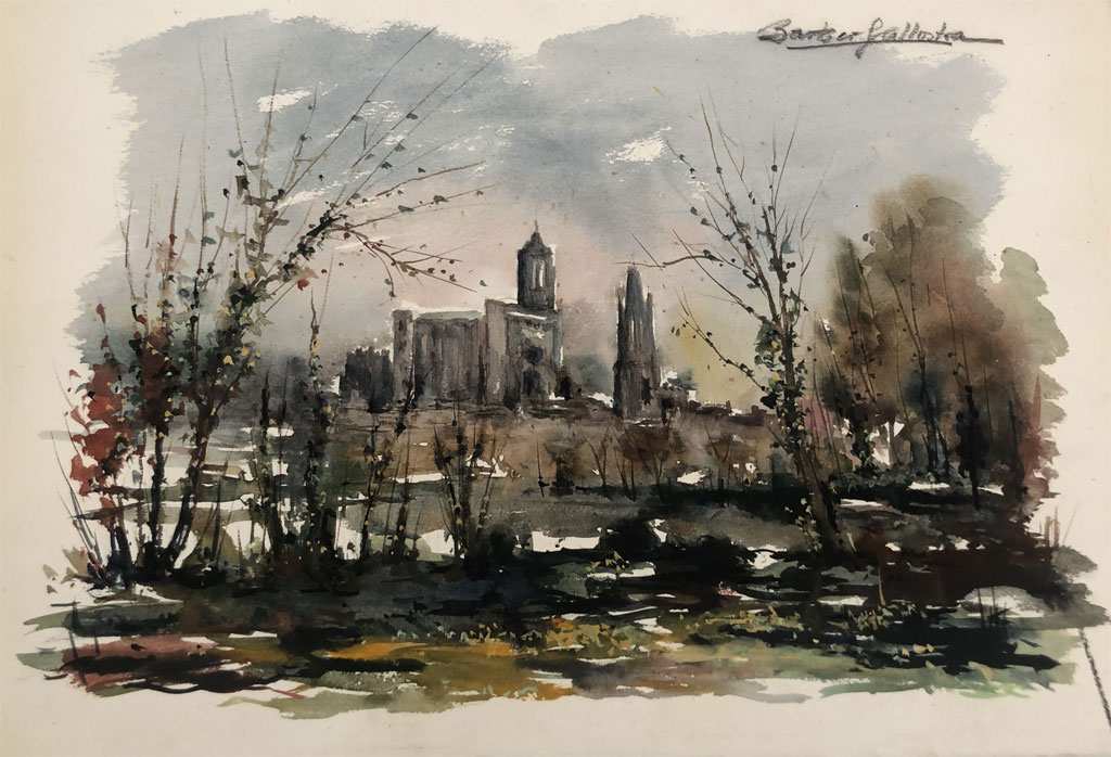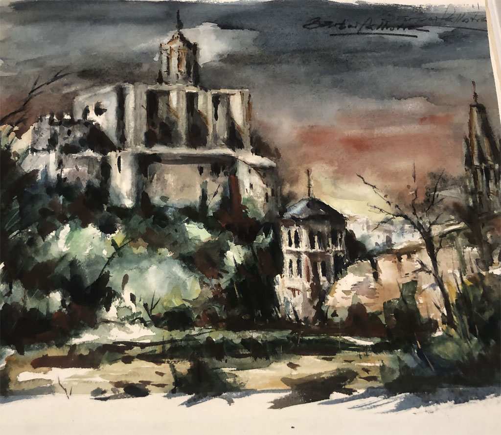 Vista de Girona amb Catedral, Sant Pere de Galligans i Sant Feliu, no datat. Aquarel·la sobre paper. MHG 17644.