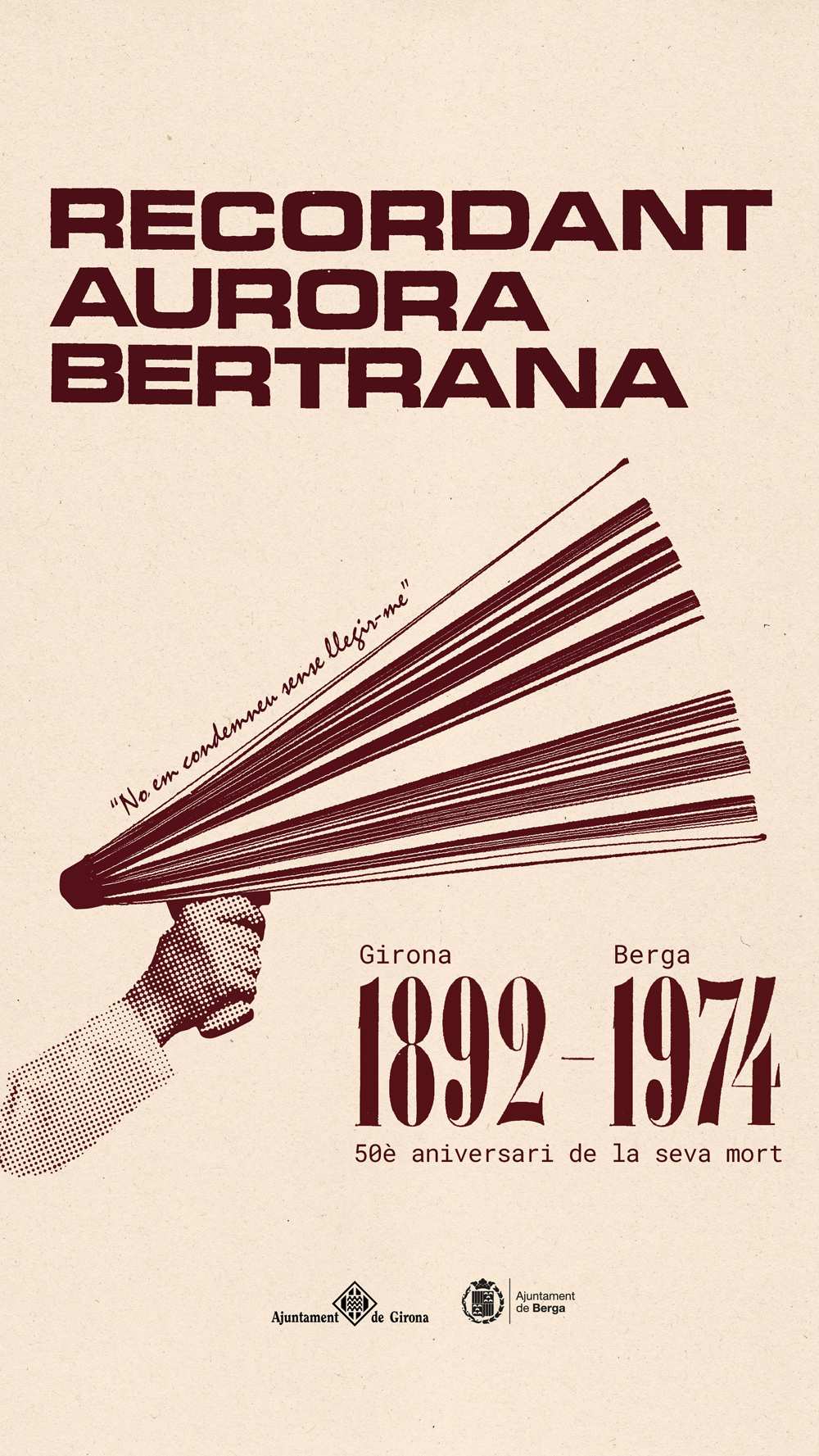 Girona i Berga han organitzat conjuntament un programa d'activitats per aquest 2024 per tal de commemorar els 50 anys de la mort d'Aurora Bertrana. L'objectiu és posar en valor la figura i l'obra de l'escriptora que va néixer a Girona i va morir a Berga. Aquest matí ha tingut lloc la presentació dels actes amb l'alcalde de Girona, Lluc Salellas i Vilar; l'alcalde de Berga, Ivan Sànchez i Rodríguez; el tinent d'alcaldia i regidora de Cultura de l'Ajuntament de Girona, Quim Ayats i Bartrina, i la regidora de Drets Culturals de l'Ajuntament de Berga, Rosa Rodríguez.